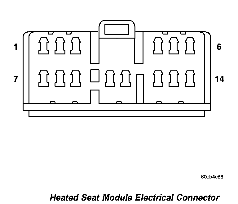 1. Back-probe the heated seat module wire harness connector, do not disconnect. Check for continuity between the ground circuit cavity #13 of the heated seat module connector and a good ground. If OK go to Step 2. If NOT OK, repair the open or shorted ground circuit as required.