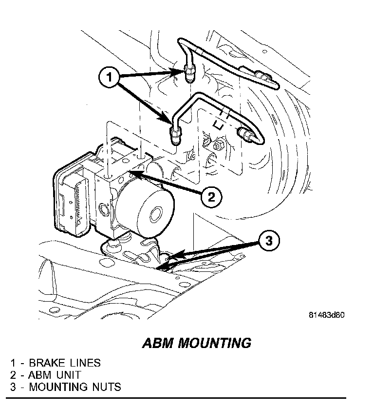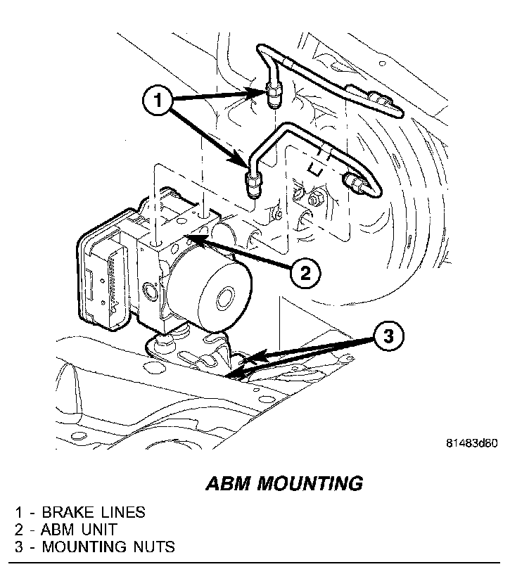 4. Install the ABM mounting bracket nuts (3) and tighten to 14.1 N.m (125 in.lbs.).