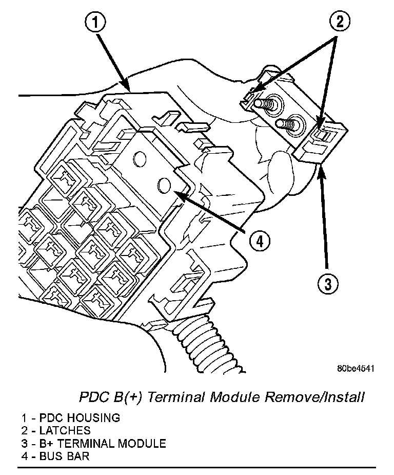 PDC B(+) Terminal Module Remove/Install: