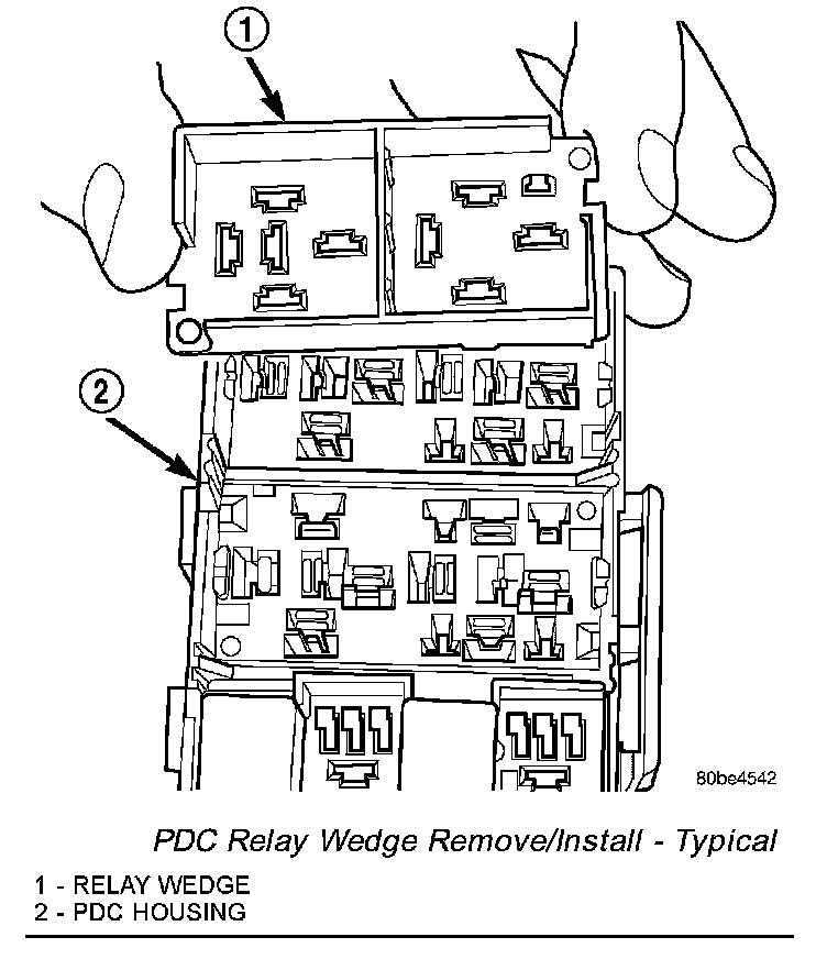 NOTE: If the PDC is being replaced with a new unit, be certain to transfer each of the fuses and relays that have not been included with the replacement PDC from the faulty PDC to the proper cavities of the replacement unit.