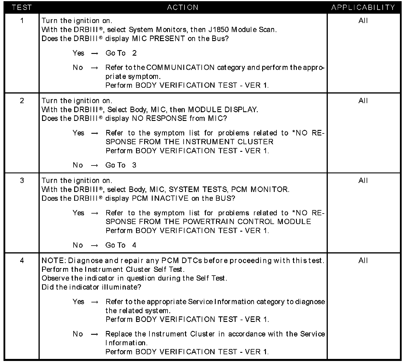 NO response - instrument cluster