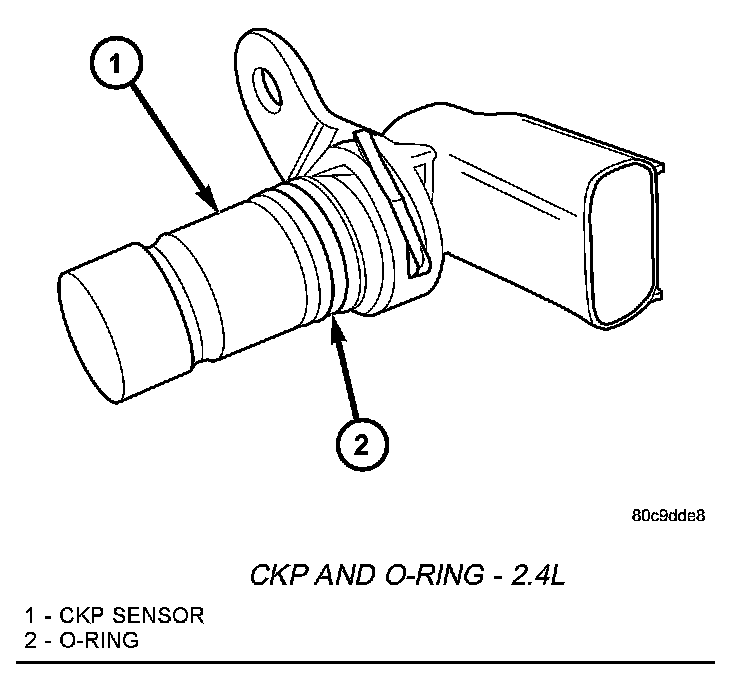 The Crankshaft Position (CKP) sensor is mounted into the right front side of the cylinder block. It is positioned and bolted into a machined hole.