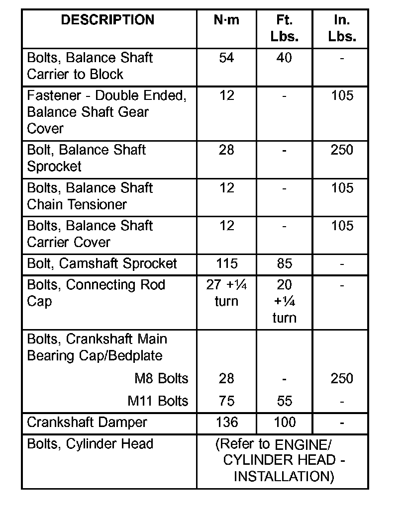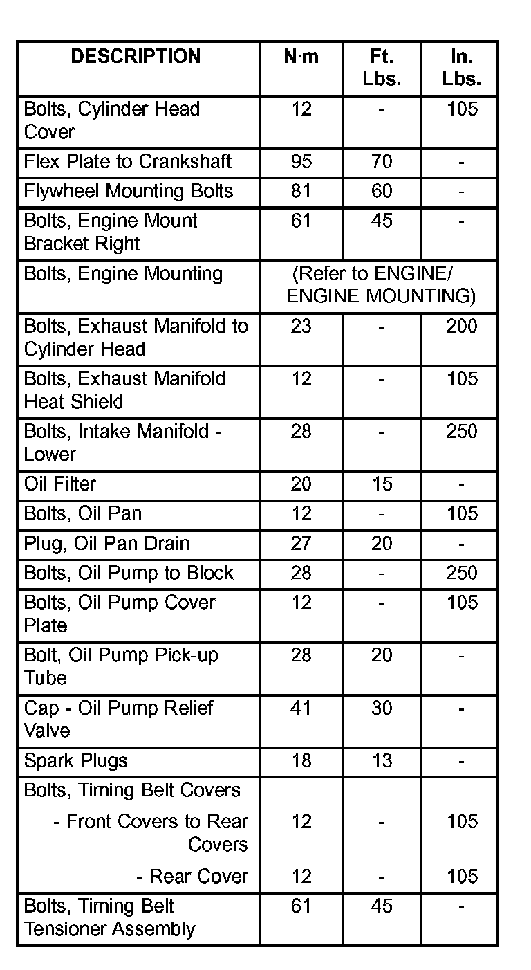 Engine Torque Specifications