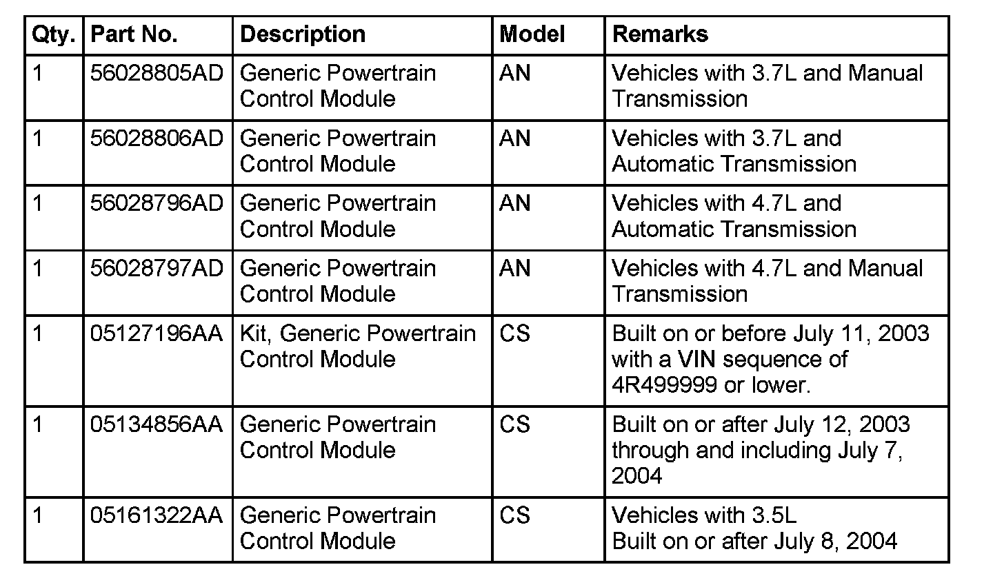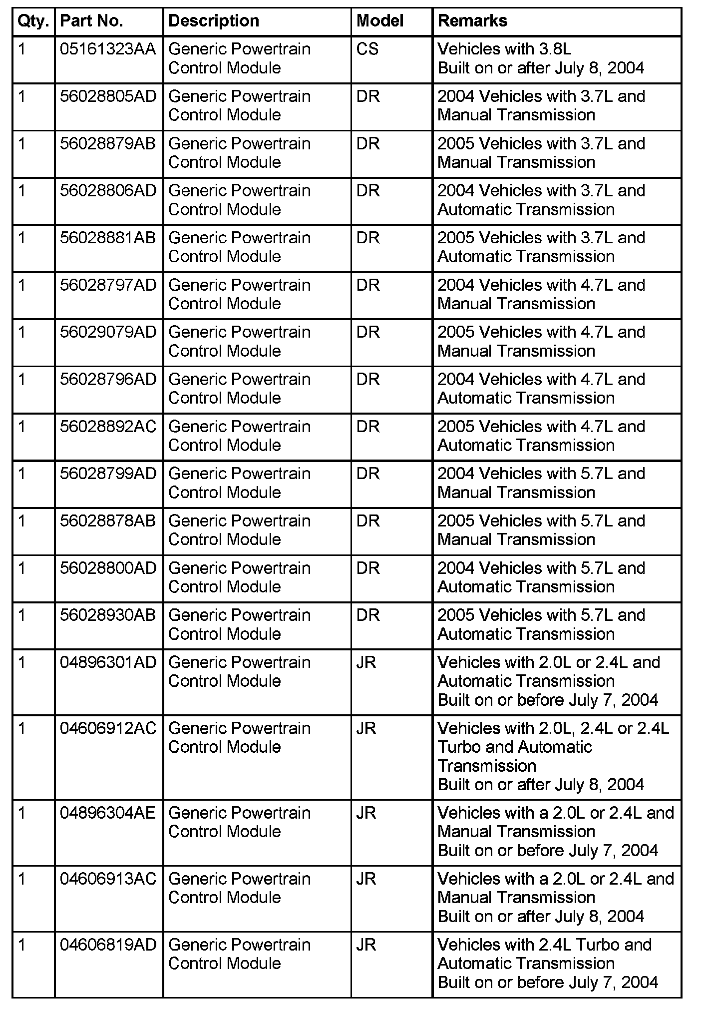 Mopar(R) is currently phasing out pre-programmed PCMs for the vehicles listed. New modules will no longer be pre-programmed when received from Mopar(R). Replacement of future PCMs will require programming utilizing the DRBIII(R) and TechCONNECT. The PCM will not operate the engine until it is programmed. A Diagnostic Trouble Code (DTC) will be set - "not programmed".
