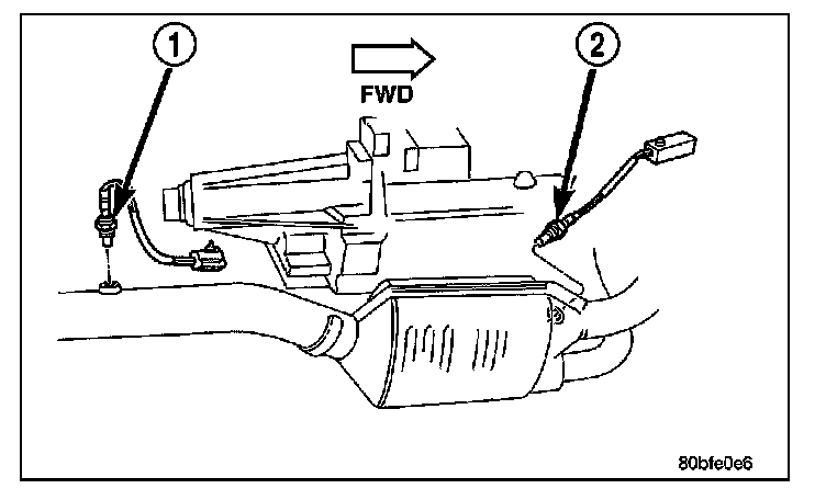WARNING: THE EXHAUST MANIFOLD, EXHAUST PIPES AND CATALYTIC CONVERTER BECOME VERY HOT DURING ENGINE OPERATION. ALLOW ENGINE TO COOL BEFORE REMOVING OXYGEN SENSOR.