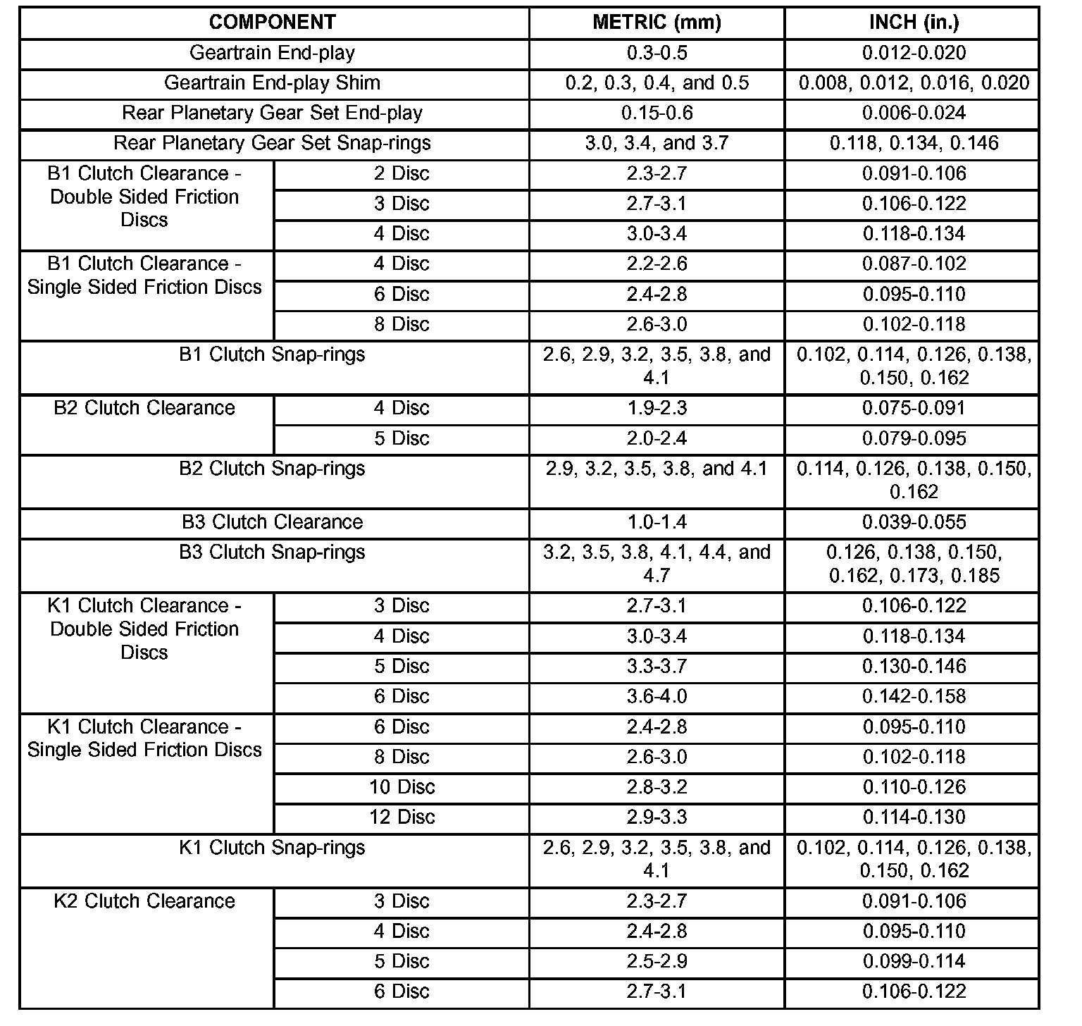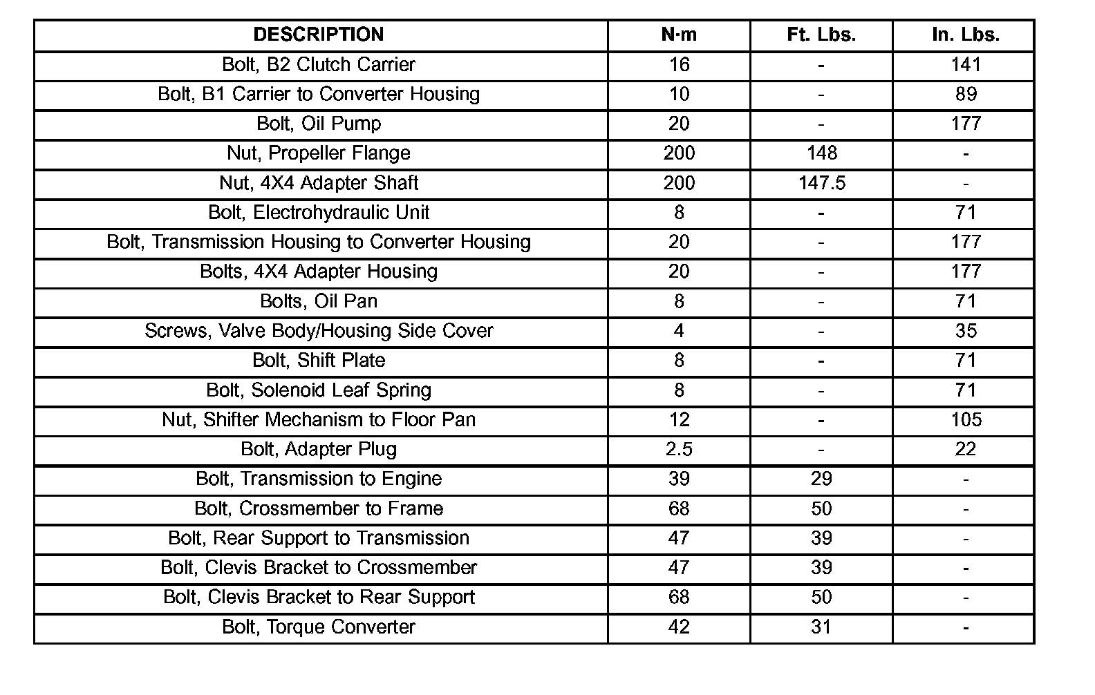 TORQUE SPECIFICATIONS: