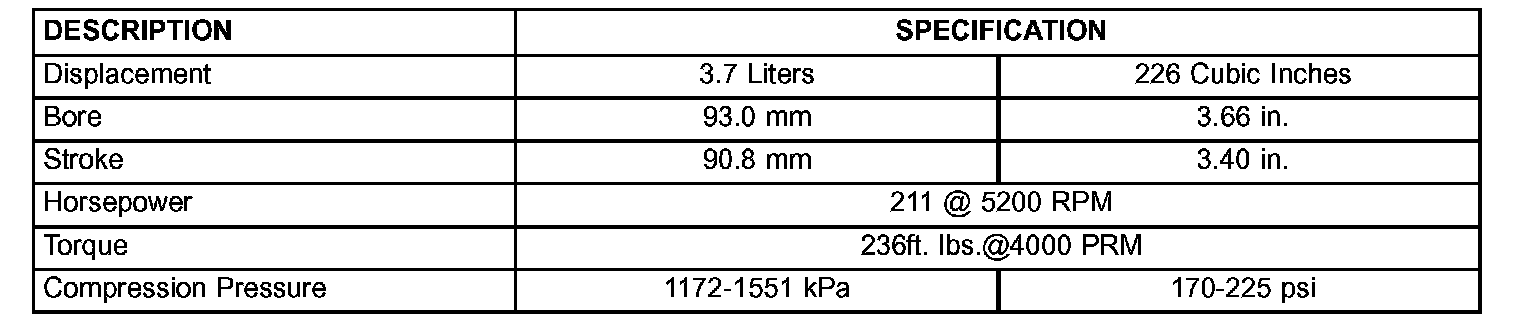 SPECIFICATIONS - 3.7L ENGINEGENERAL SPECIFICATIONS:
