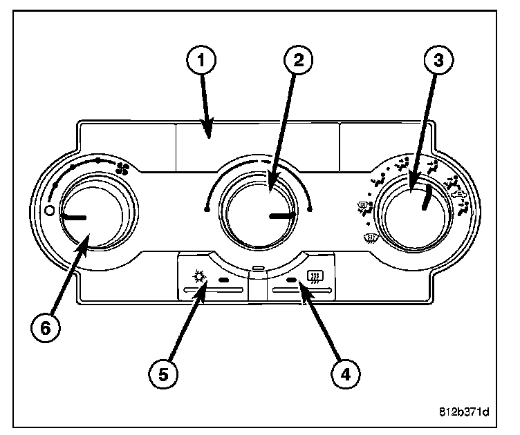 - a push button rear window defogger on/off control (3). The defogger button contains an LED that illuminates when the rear window defogger system is in operation.