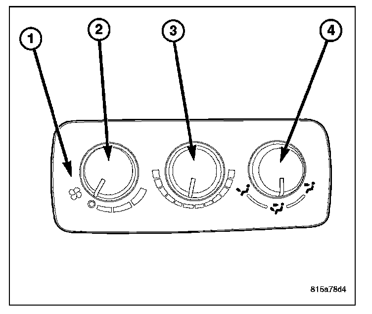 - a rotary control knob for fan speed selection and turning the rear heating-A/C system off (2).