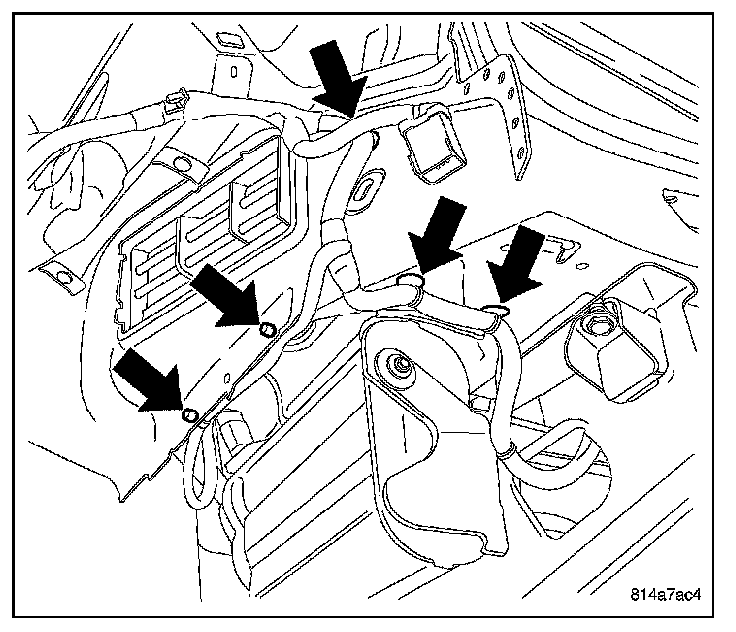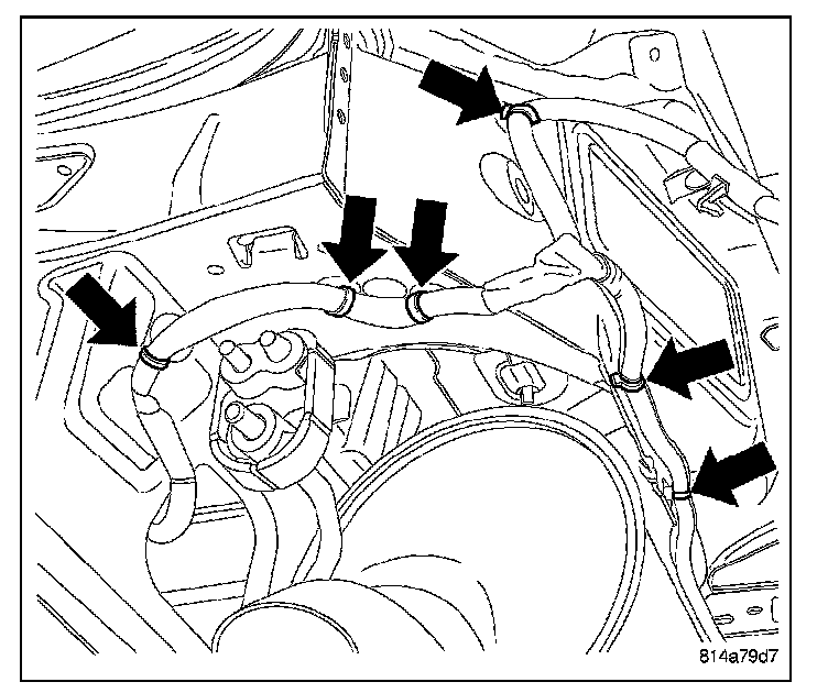 18. Position the left wire harness through the cradle and secure the harness hangers.