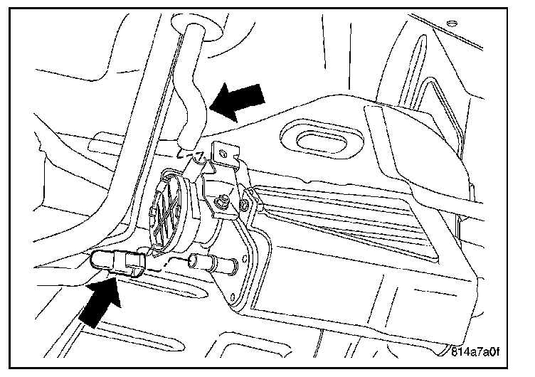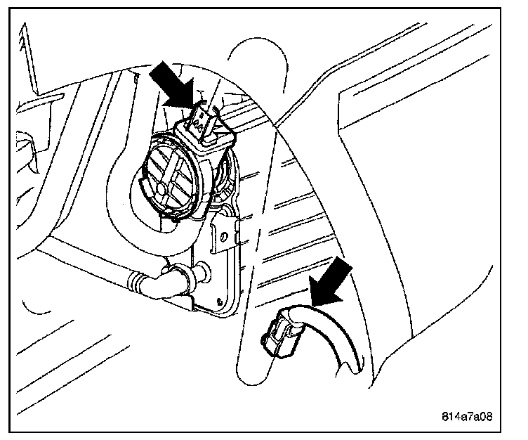 19. Install the vapor canister (1) and install the lower canister nut (2).