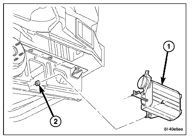 9. Remove the lower canister nut (2) and remove the vapor canister (1).