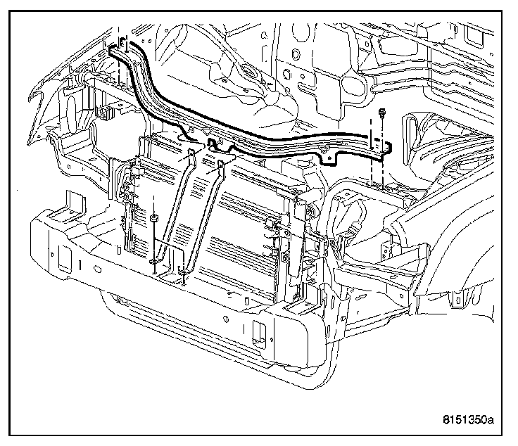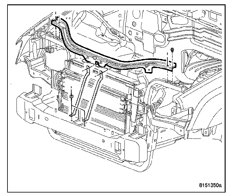 3. Install nuts attaching latch to radiator crossmember support. Tighten nuts to 11 N.m (8 ft.lbs) torque.