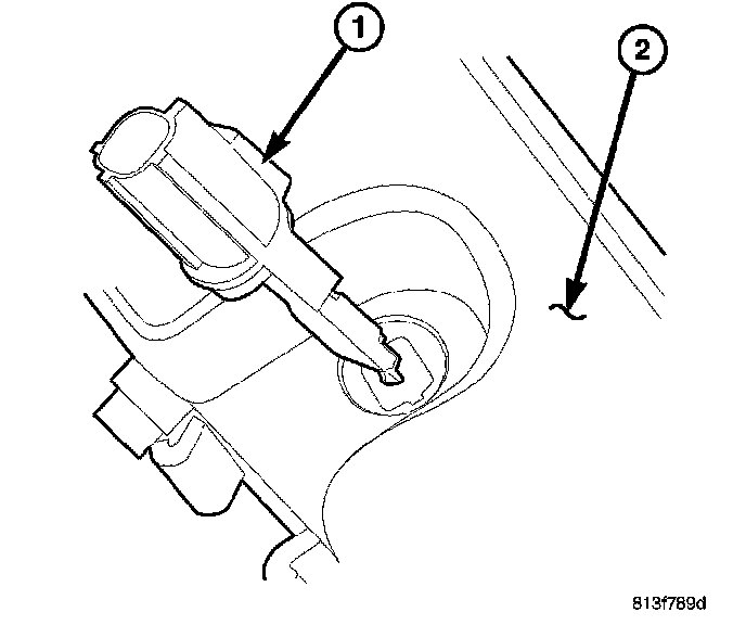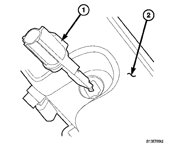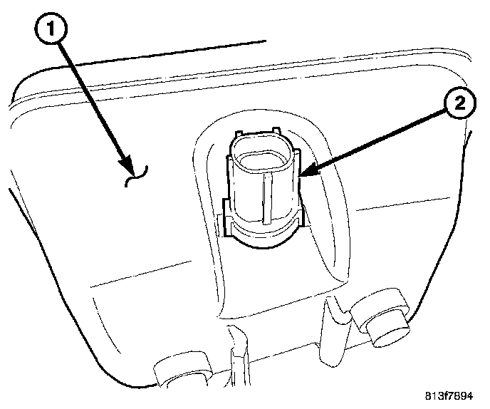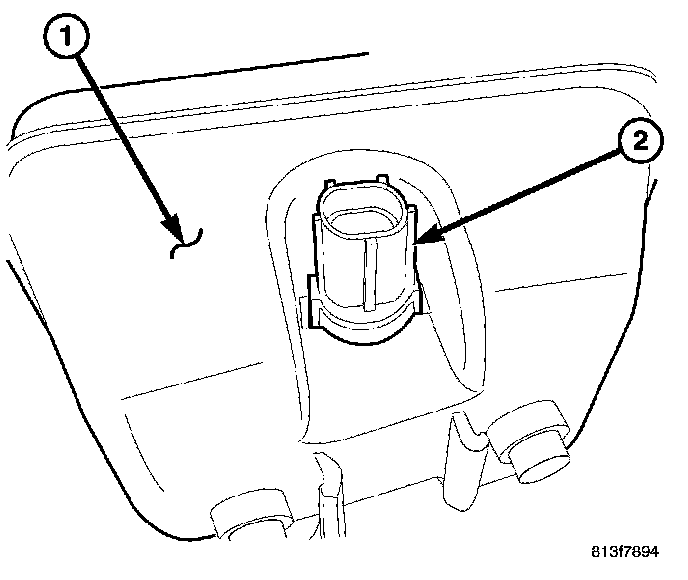 1. Remove the wire connector from the fluid level sensor (2).