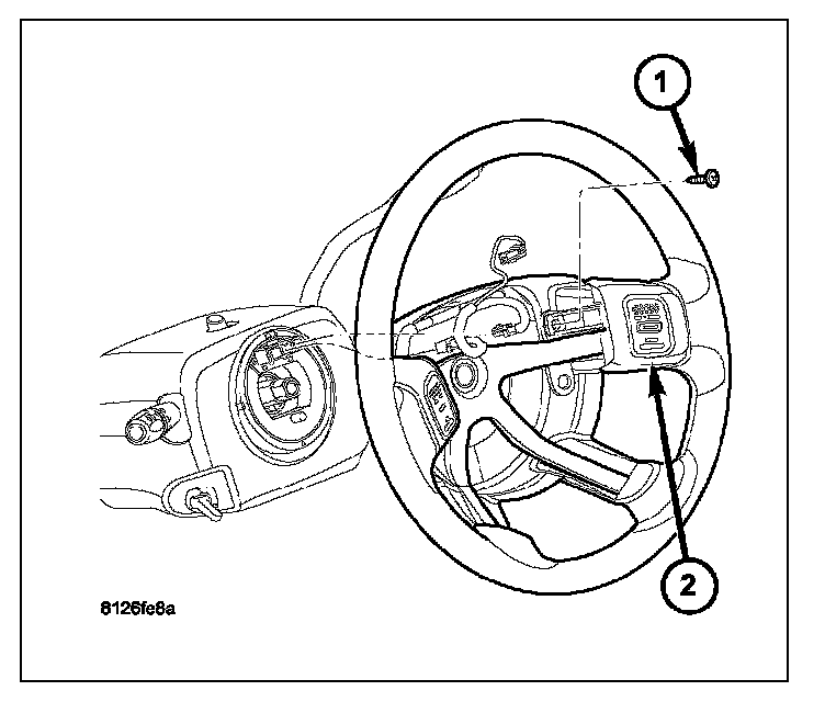 4. Remove speed control switch mounting screw (1) and remove switch from steering wheel.