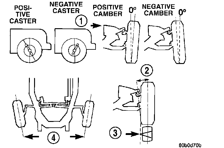 - TOE (4) is the difference between the leading inside edges and trailing inside edges of the front tires. Wheel toe position out of specification cause's unstable steering, uneven tire wear and steering wheel off- center. The wheel toe position is the final front wheel alignment adjustment.