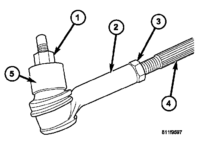2. Loosen the tie rod jam nuts (3).