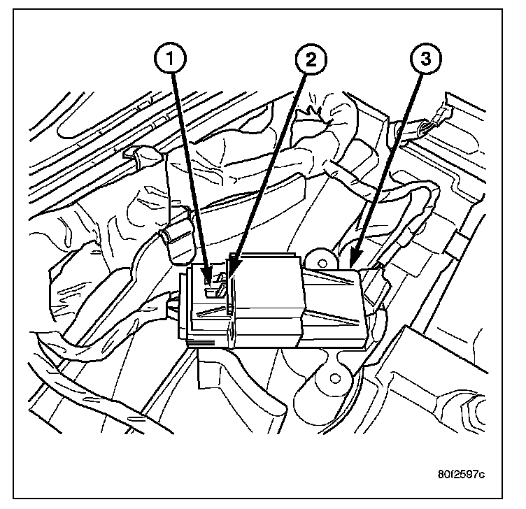 1. Disconnect electrical connector at sensor by sliding release lock out (1). Press down on lock tab (2) for removal.