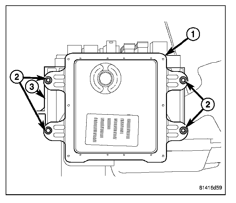 3. Remove the four fasteners (2) securing the Front Control Module (FCM) (1) to the IPM (3).