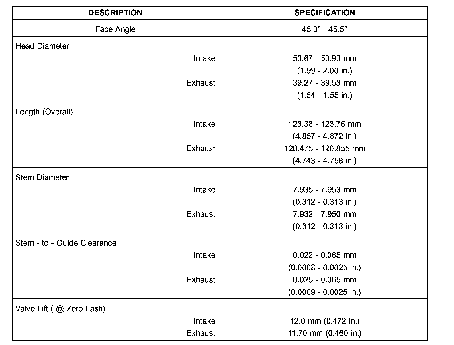 VALVE TIMING: