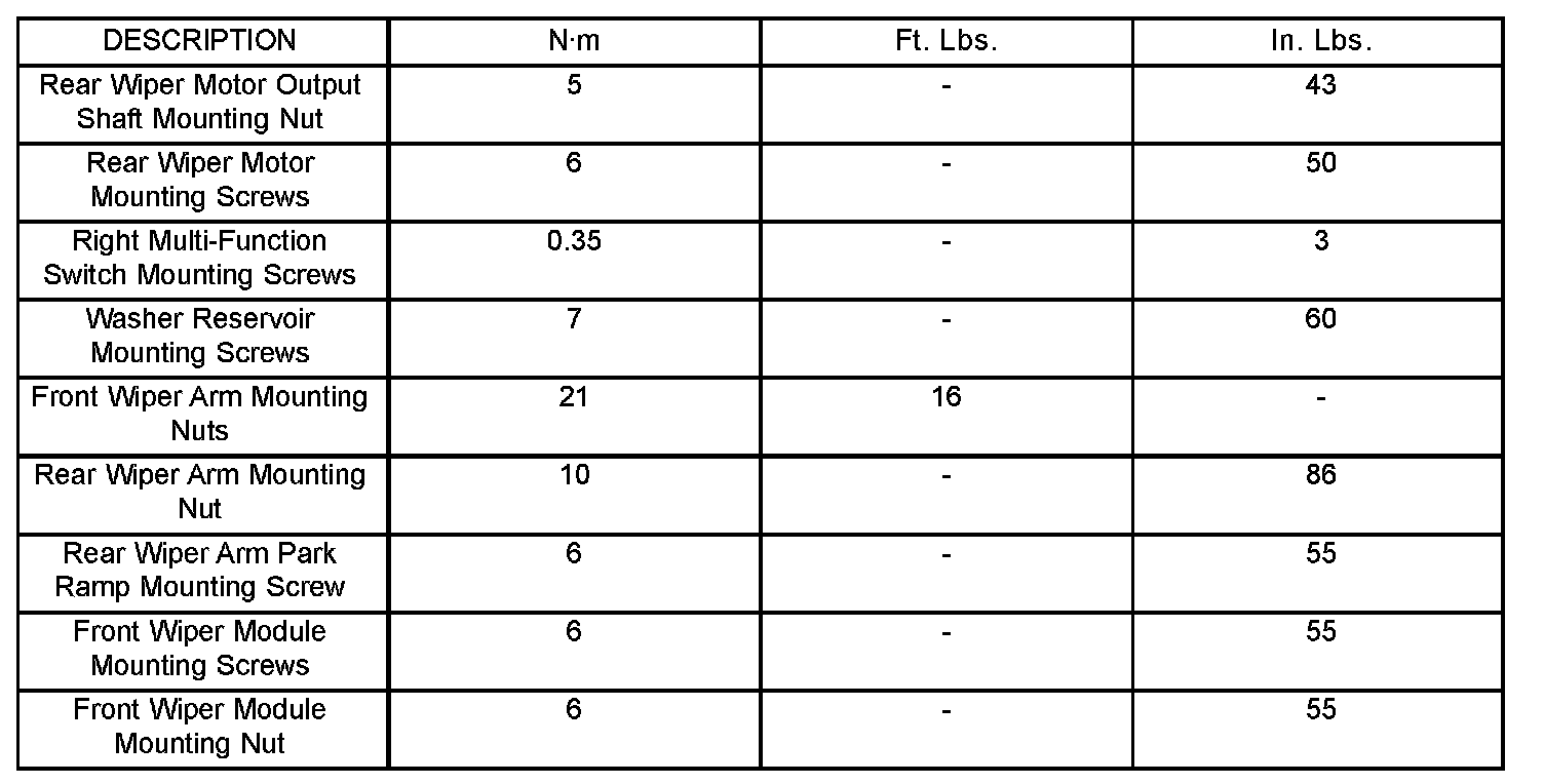 Wiper and Washer Systems: Specifications