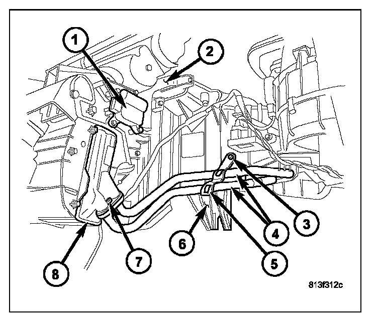 1. Carefully install the heater core (8) into the passenger side of the HVAC air distribution housing (2).