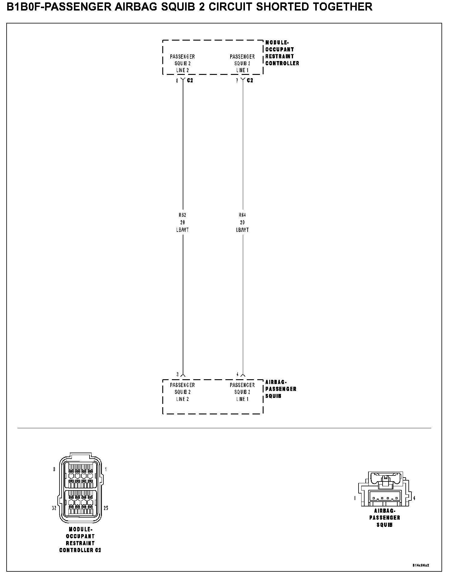 - (R64) passenger squib 2 line 1 circuit shorted to (R62) passenger squib 2 line 2 circuit