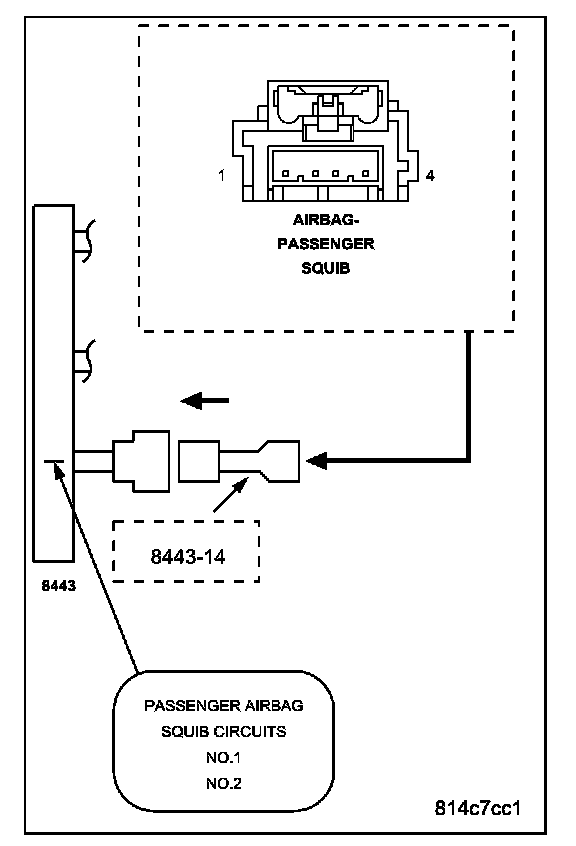 Connect the 8443 Load Tool to the Passenger Airbag Squib connector.