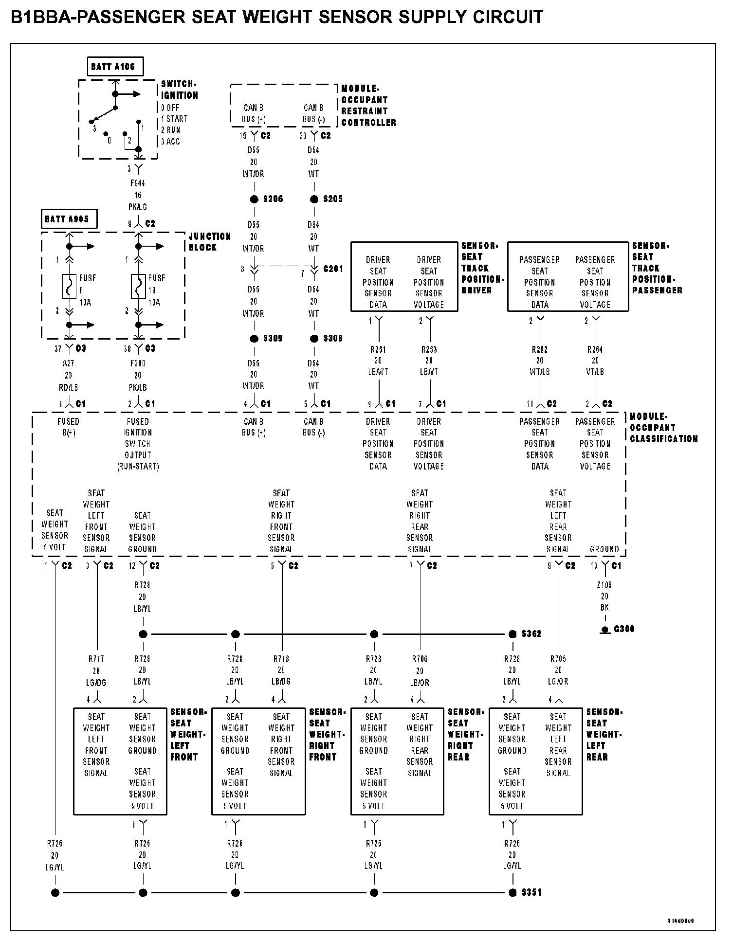 B1BBA - PASSENGER SEAT WEIGHT SENSOR SUPPLY CIRCUITB1BBA - Passenger Seat Weight Sensor Supply Circuit: