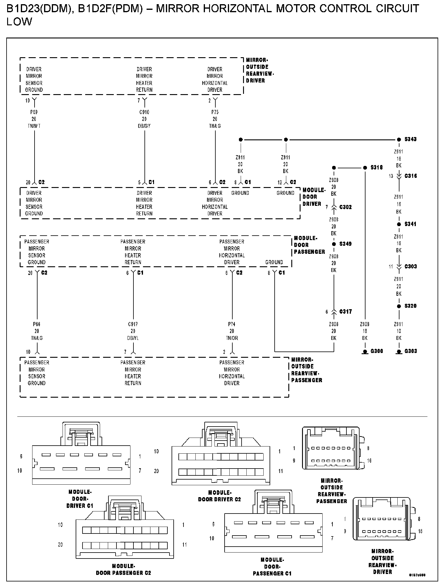 - (P75) driver mirror horizontal driver circuit shorted to (Z911) ground circuit