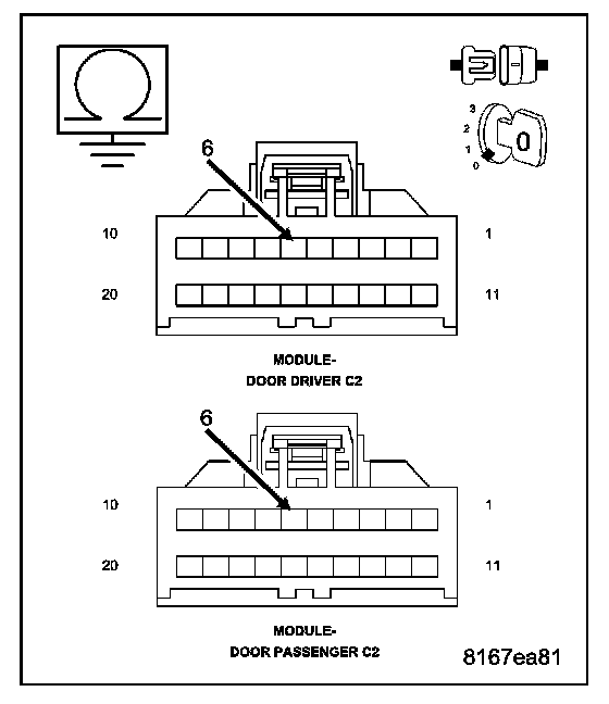 - Disconnect the Passenger Door Module C2 connector.
