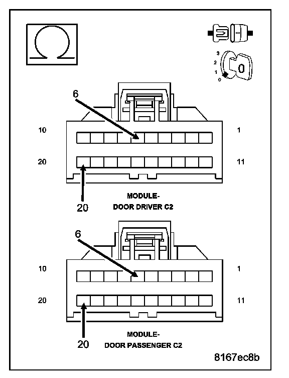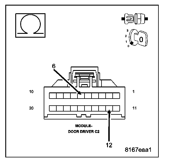 - Disconnect the Driver Door Module C2 connector.