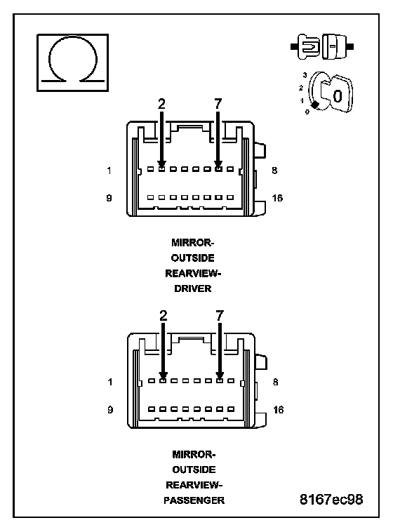 2. TEST FOR A SHORTED OUTSIDE REARVIEW MIRROR
