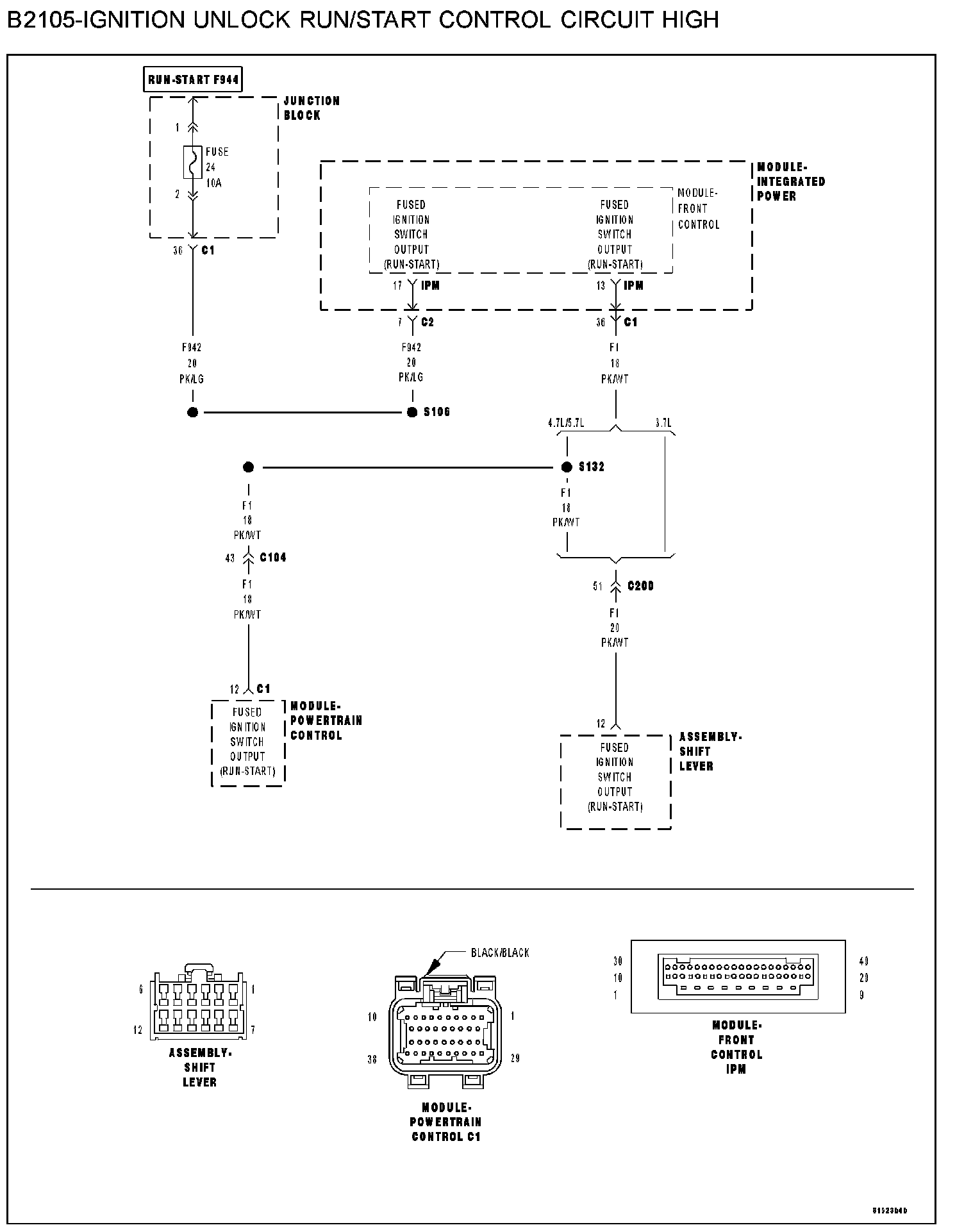 B2105-IGNITION UNLOCK RUN/START CONTROL CIRCUIT HIGHB2105 - Ignition Unlock Run/Start Control Circuit High: