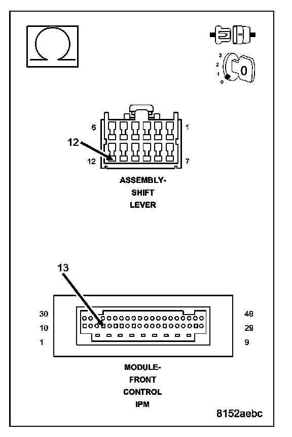 Measure the resistance of the (F1) Fused Ignition Switch Output (Run Start) circuit between the Shift Lever Assembly and the FCM-IPM connector.