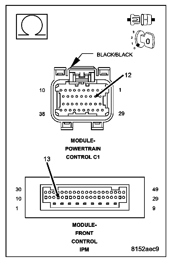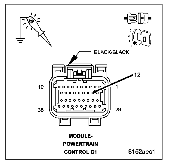 Disconnect the Powertrain Control Module C1 harness connector.