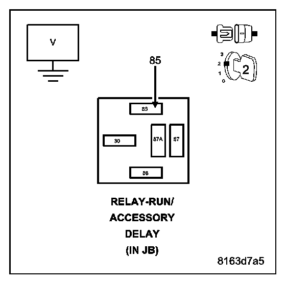 Measure the voltage of the (P305) Accessory Delay Relay Control circuit at the relay connector (cavity 85).