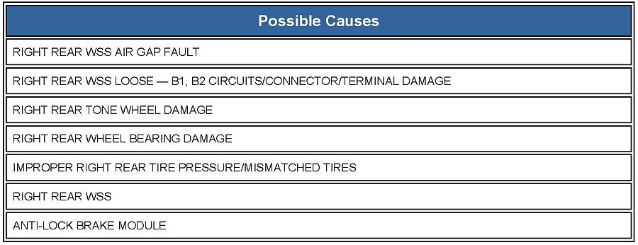 When the Right Rear Wheel Speed Sensor (WSS) Signal is intermittently missing while vehicle speed is above 40 km/h (25 mph) or erratic wheel speed signal during acceleration or sensed wheel speed is different from other wheels.