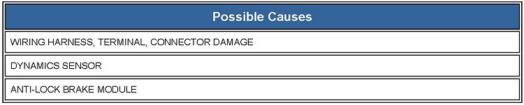When the Anti-Lock Brake Module indicates the Dynamics Sensor stored calibration values are invalid.