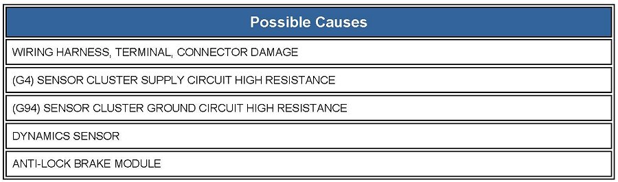 - Repair the (G94) Dynamics Sensor Ground circuit for high resistance.