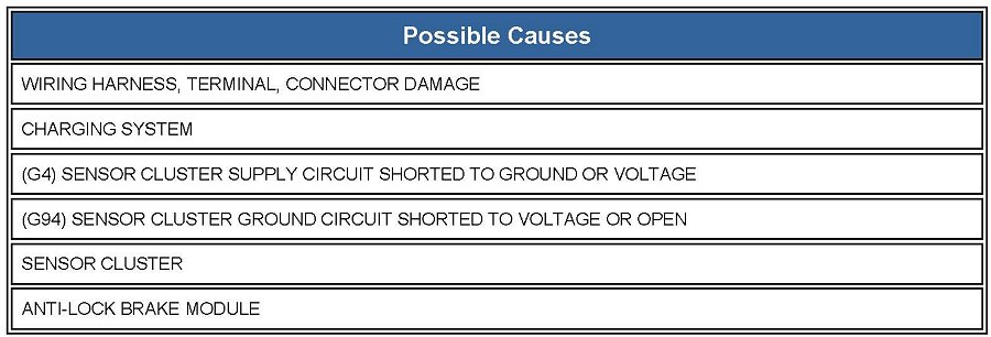 - Repair the (G94) Sensor Cluster Ground circuit for a short to voltage.