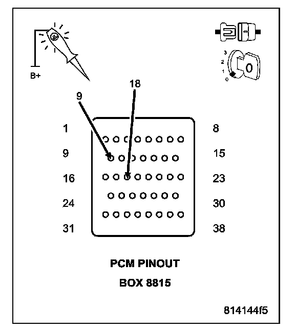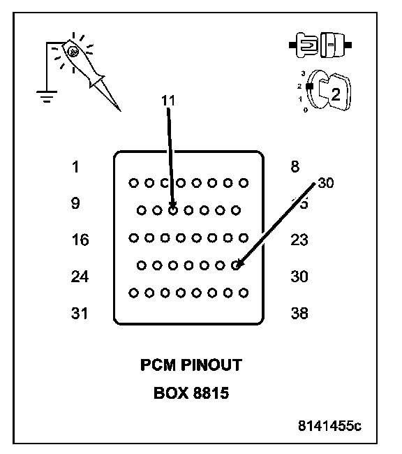CAUTION: Do not probe the PCM harness connectors. Probing the PCM harness connectors will damage the PCM terminals resulting in poor terminal to pin connection. Install Miller Special Tool #8815 to perform diagnosis.