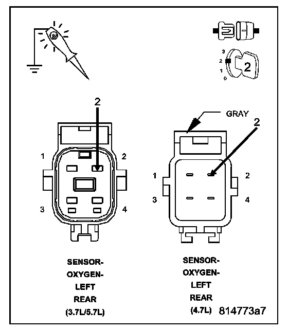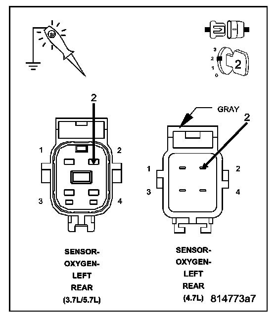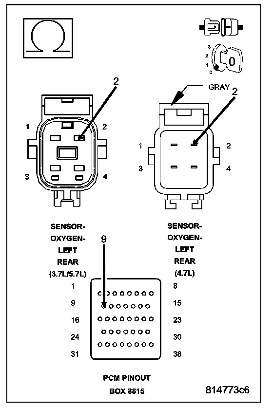 NOTE: O2 Heater Element resistance values should be measured at 70°F (21.1°C). The resistance value will vary with different temperature values.