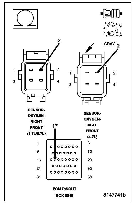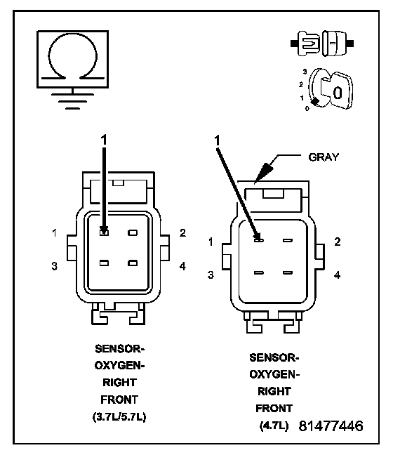 NOTE: O2 Heater Element resistance values should be measured at 70°F (21.1°C). The resistance value will vary with different temperature values.
