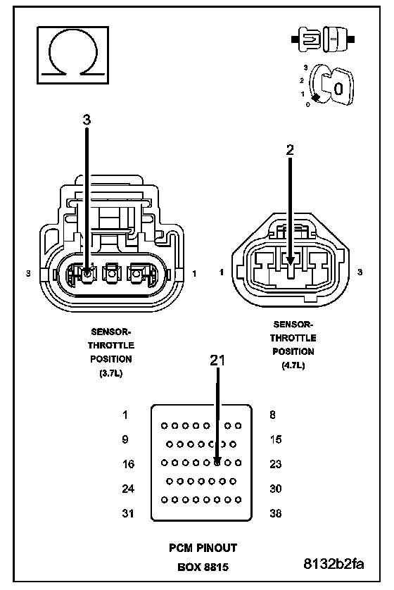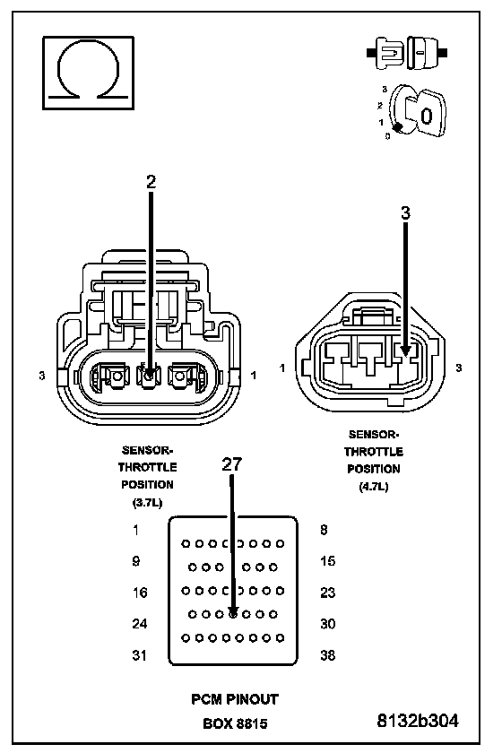 CAUTION: Do not probe the PCM harness connectors. Probing the PCM harness connectors will damage the PCM terminals resulting in poor terminal to pin connection. Install Miller Special Tool #8815 to perform diagnosis.