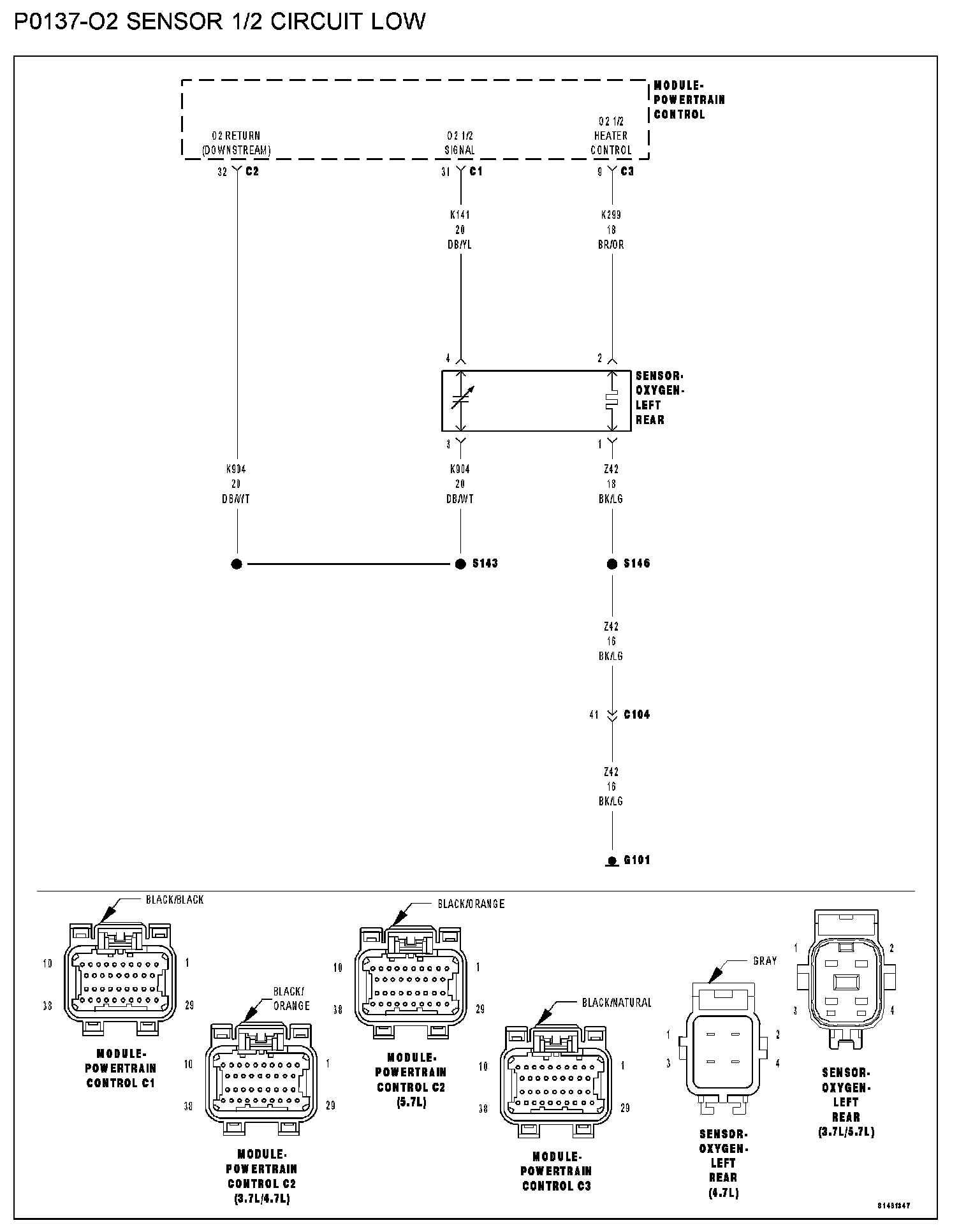 6. (K141) O2 1/2 SIGNAL CIRCUIT SHORTED TO THE (K904) O2 RETURN DOWNSTREAM CIRCUIT