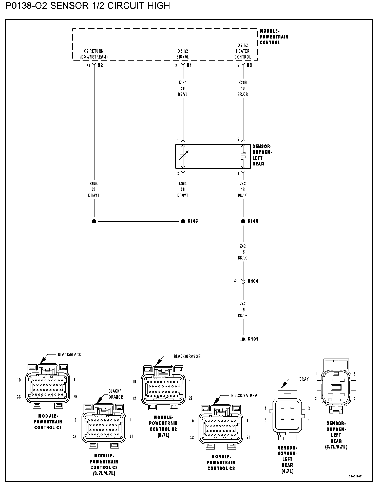 - (K141) O2 1/2 signal circuit shorted to battery voltage