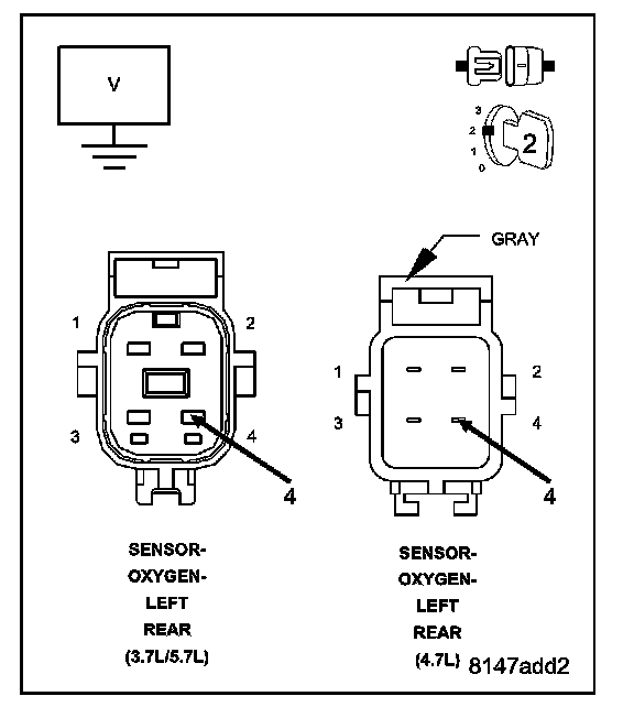 NOTE: Measure the voltage in reference to ground, not the (K904) O2 Return Downstream circuit.