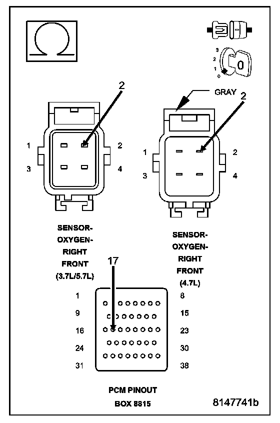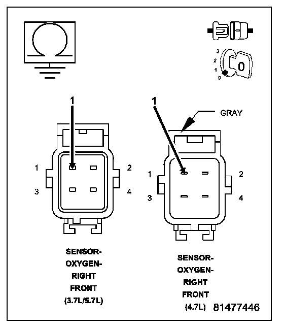 NOTE: O2 Heater Element resistance values should be measured at 70°F (21.1°C). The resistance value will vary with different temperature values.