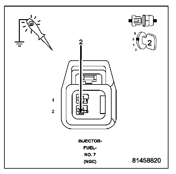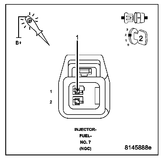 Using a 12-volt test light connected to 12-volts, probe the (K26) Injector Control No.7 circuit.